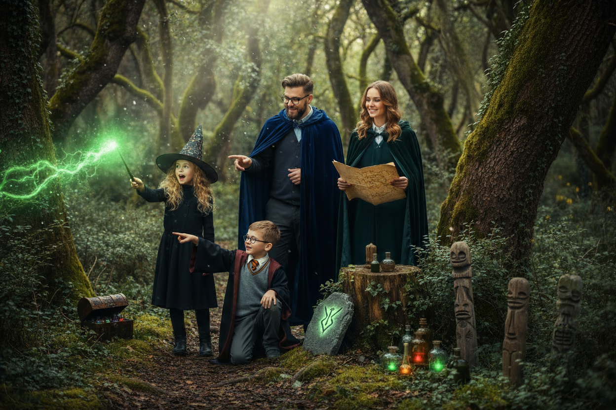Dans la Forêt Magique de Sorcelia, choisissez votre quête et partez à l’aventure… 4 parcours enchantés pour les sorciers de tous âges, à partager en famille ou entre amis :